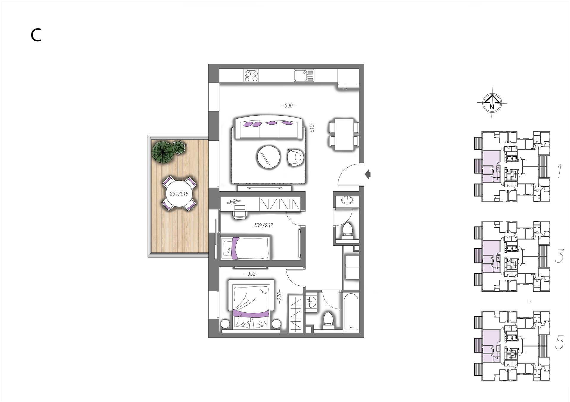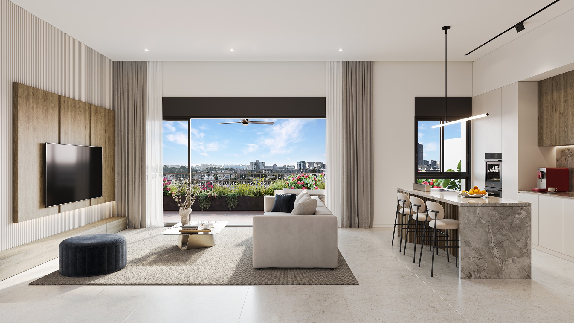 בבניינים מתוכננות דירות עם מרפסות ענק בגודל של 24–40 מ"ר, עם עיצוב מוקפד וסטנדרט גבוה, שמעניקים תחושה של לוקסוס אמיתי. האדריכלות המודרנית מייצרת מראה תל אביבי מדויק ומרשים, ומשדרת יוקרה וחזון וסטייל.